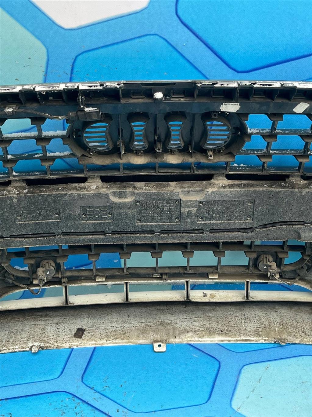 Бампер в сборе с парктрониками и омывателями Ровный целый (без ремонтов) 8K0853651 / 8K0 853 651 Решетка центральная 8K0807110 / 8K0 807 110 Нижний спйолер 8K0807682C / 8K0 807 682 C Решетка правая 8K0807681C / 8K0 807 681 C левая 8T0941699B / 8T0 941 699 B Противотуманная фара левая 8T0941700B / 8T0 941 700 B Противотуманная фара правая